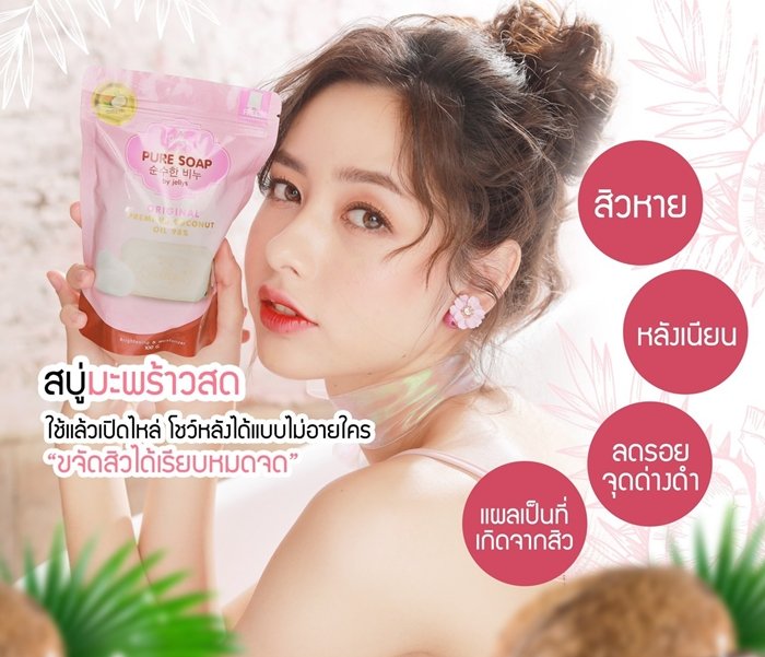 PURE SOAP เป็นผลิตภัณฑ์ ดูแลและบำรุงผิวพรรณ ที่มีประสิทธิภาพจากธรรมชาติ เป็น สบู่น้ำมันมะพร้าวเข้มข้น สูตรพรีเมี่ยม 98%  เน้นว่าสกัดมาจากธรรมชาติ ตัวนี้มาพร้อมสารสกัดกลูต้าไธโอน และคุณค่าวิตามินจากผลไม้ที่รวมอยู่ในก้อนเดียว บอกเลยว่า คุณภาพเข้าสู่ผิวพรรณคุณ บำรุงกันไปเต็มๆ เปิดประสบการณ์ใหม่ในการทำความสะอาดผิวได้อย่างล้ำลึกและอ่อนโยน พร้อมการฟื้นฟูบำรุงผิว แถมยังช่วยขจัดสิ่งสกปรกขี้ไคลให้หลุดออก หากใช้ต่อเนื่องเป็นประจำทุกวัน จะช่วยลดการอักเสบของผิว และช่วยเติมน้ำสู่ผิว ทำให้ผิวแลดูชุ่มชื่น ไม่มีปัญหาเรื่องผิวแห้งกร้านแต่อย่างใด ทำให้ผิวเปล่งปลั่ง ทำให้ผิวแลดูอ่อนเยาว์ ทำให้สุขภาพดีอย่างเป็นธรรมชาติ ผิวแลดูกระจ่างใสตั้งแต่ครั้งแรกที่ใช้